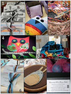 This past weekend I participated in a local craft swap with some pretty amazing (and amazingly talented women).  The hostess of the swap, Robin, gave me permission to share photo's that she took of the items being offered for swap (item list below photo):